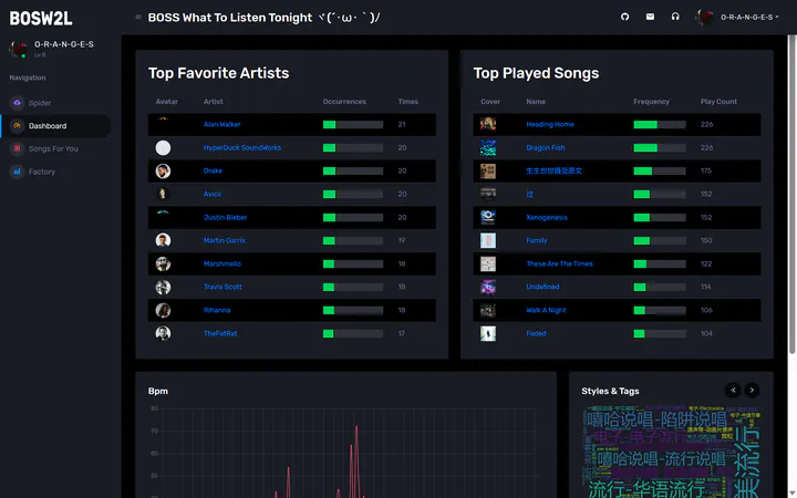 Boss What to Listen TonightMay 20, 2023 · 1 min readGo to Project SiteA personal songs data analysis programme on NeteaseCloudMusic platform. It provides following features based on your history song data:Last updated on May 20, 2023 AuthorsZicheng Zeng (曾子乘)Undergraduate Student of Artificial Intelligence ← Health Tracker Dec 5, 2023Smart Lamp Dec 16, 2022 →